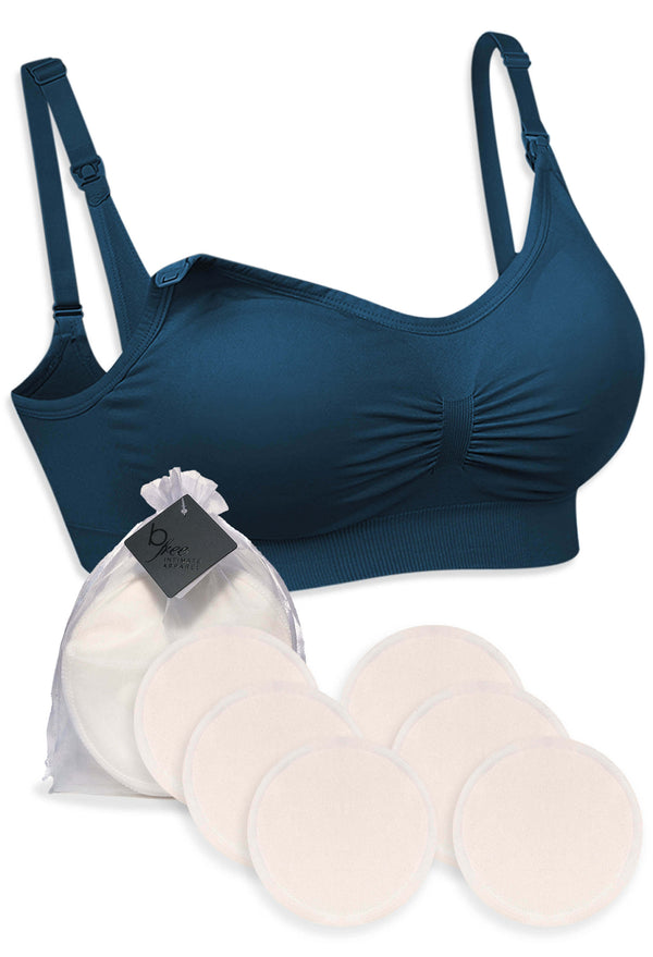• Receive the same benefits of wearing a super stretchy and soft seamless bamboo nursing bra whilst having leakage protection. The nursing pads simply lay against your skin without inhibiting any stretch.